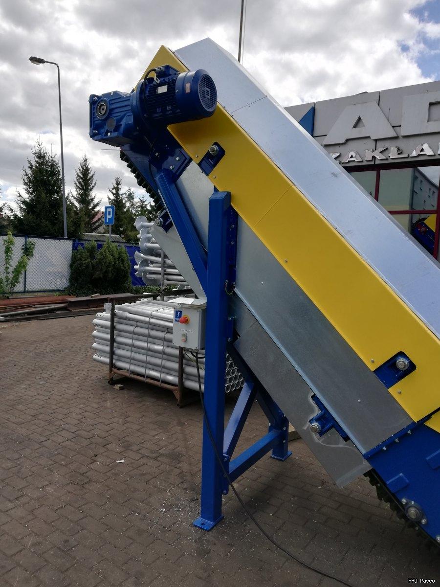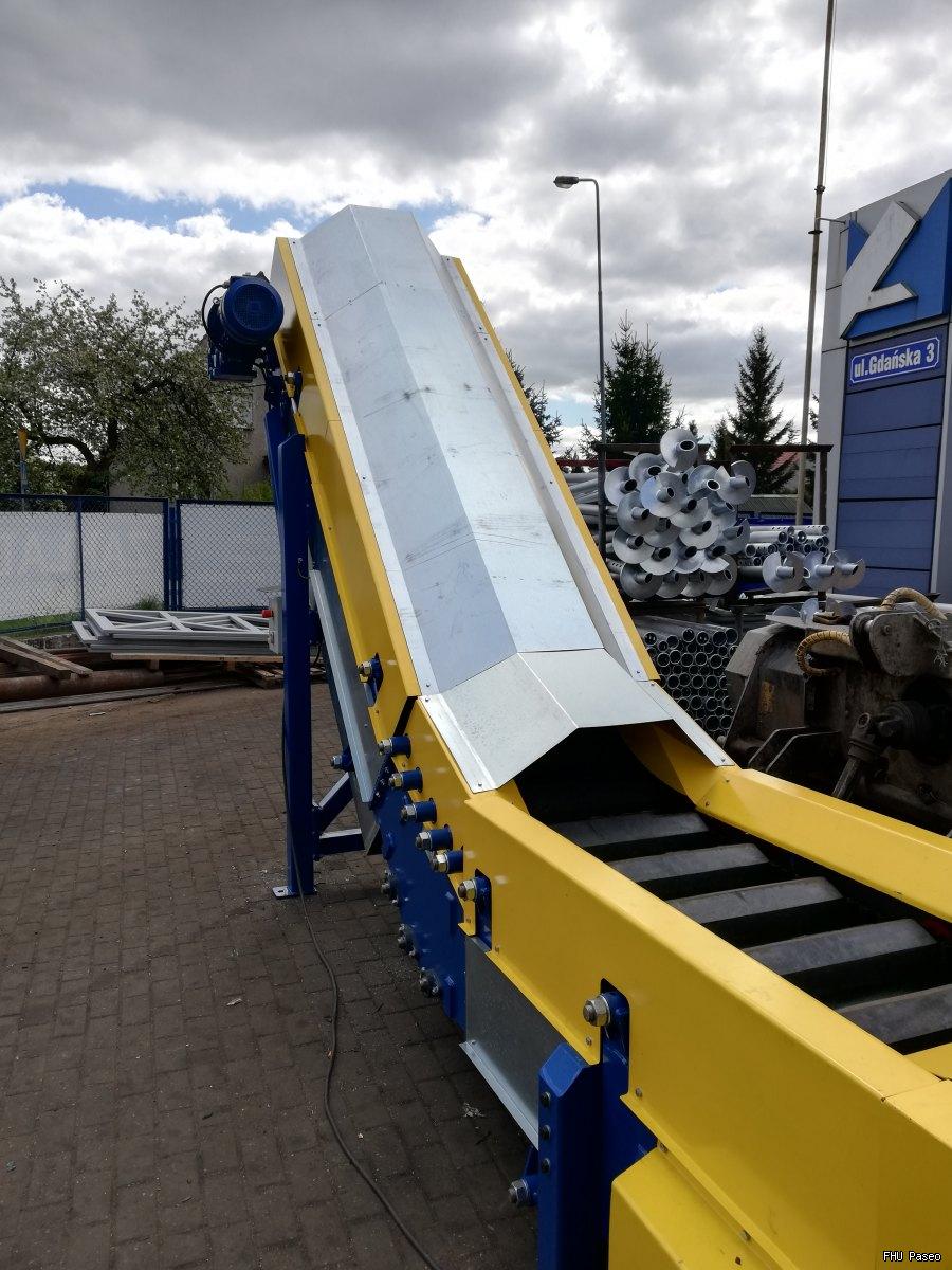 Chciałbym Państwu zaprezentować nasze nowe dzieło. Współpracując z Firmą Admet ze Szczecinka wykonaliśmy taśmociąg transportujący elektroodpady. Jak widać duży kąt i mało miejsca nam nie straszne. Taśma wykonana w specjalistycznym wykonaniu. Progi i Falbana o wysokości H120 wykonana na taśmie metodą na gorąco. Solidna konstrukcja i porządnie wykonana taśma to gwarancja niezawodnej i bezawaryjnej pracy. Potrzebujesz pomocy w transporcie materiału? My Ci pomożemy. Zapraszamy do kontaktu.